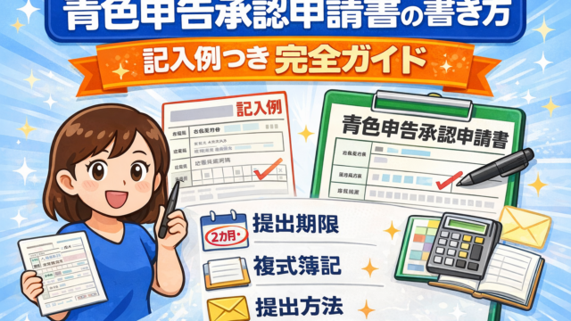 青色申告承認申請書の書き方を初心者向けにわかりやすく解説。記入例・提出期限・複式簿記の選び方・提出方法まで完全ガイド。開業したばかりの個人事業主でも迷わず書けます。