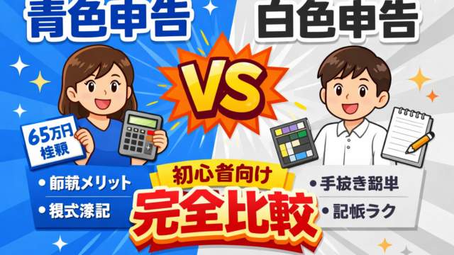 青色申告と白色申告の違いを初心者向けに完全比較。65万円控除・手続き・難易度を分かりやすく解説し、どちらを選ぶべきかがこの記事1本で分かります。